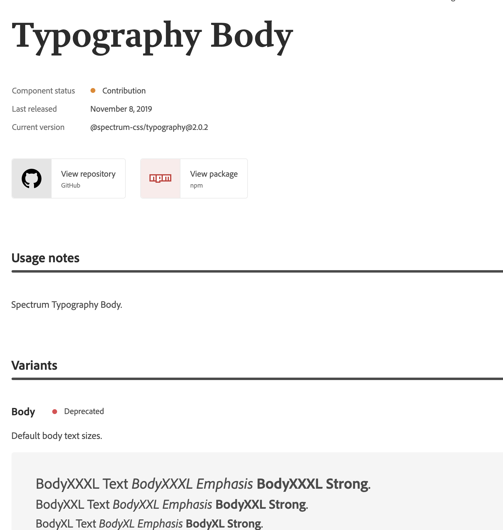 SDS-3259 Update Spectrum CSS Typography documentation: Spectrum CSS NextJS & legacy documentation