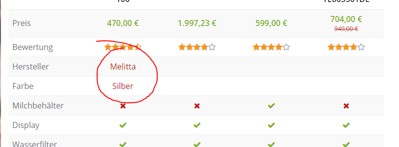 Und voilà, schon werden in euren Vergleichstabellen automatisch die Taxonomien eingetragen und ihr habt die volle Kontrolle darüber welche Einträge erscheinen und welche nicht. :)