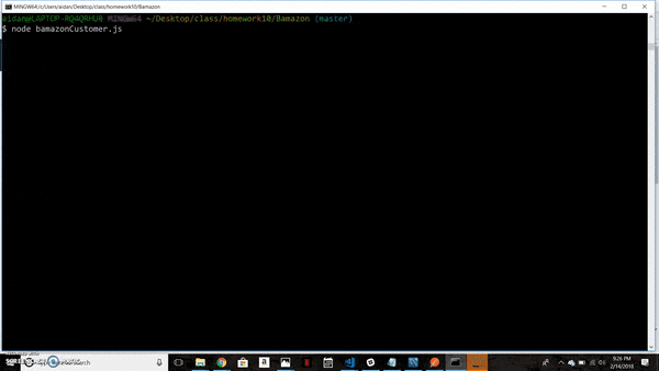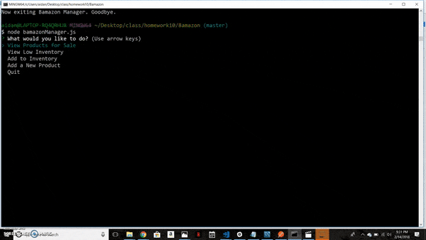 Bamazon is an Amazon-like storefront utilizing MySQL database to view products and manage inventory.