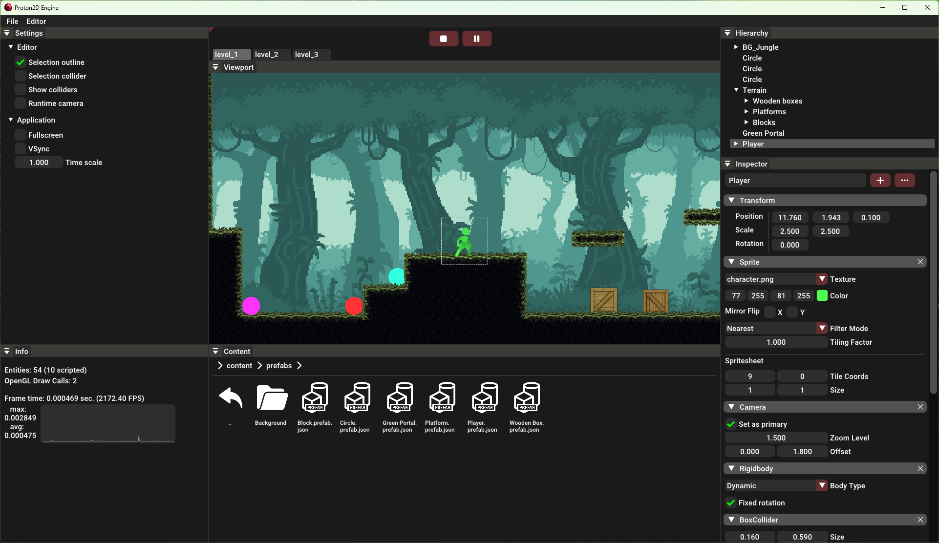 Proton2D is a simple open-source game engine specifically designed to make 2D platformer games.