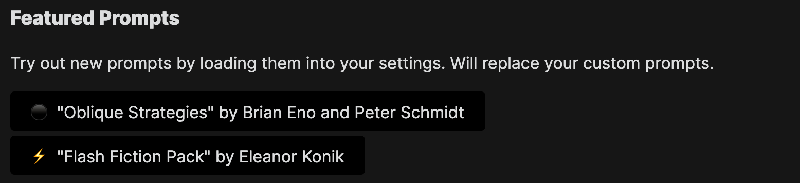 I've included a loadable prompt pack for Oblique Strategies. To activate it...