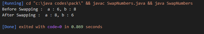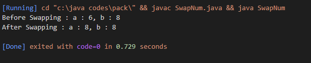 System.out.printf("After Swapping with temp variable: a=%d,b=%d\n",a,b);