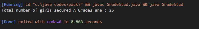 System.out.println("Total no. of girls secured 'A' grade = "+c);