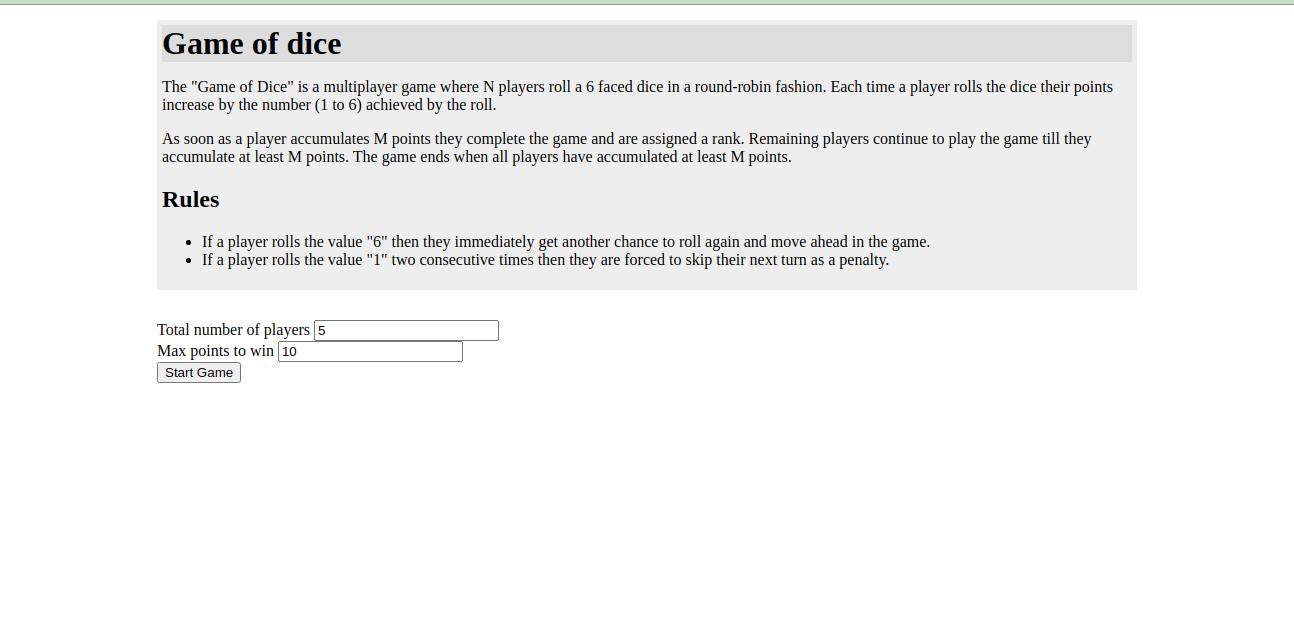 Step 1 : Enter numbers of players and min points to win the game and press Start Game.
