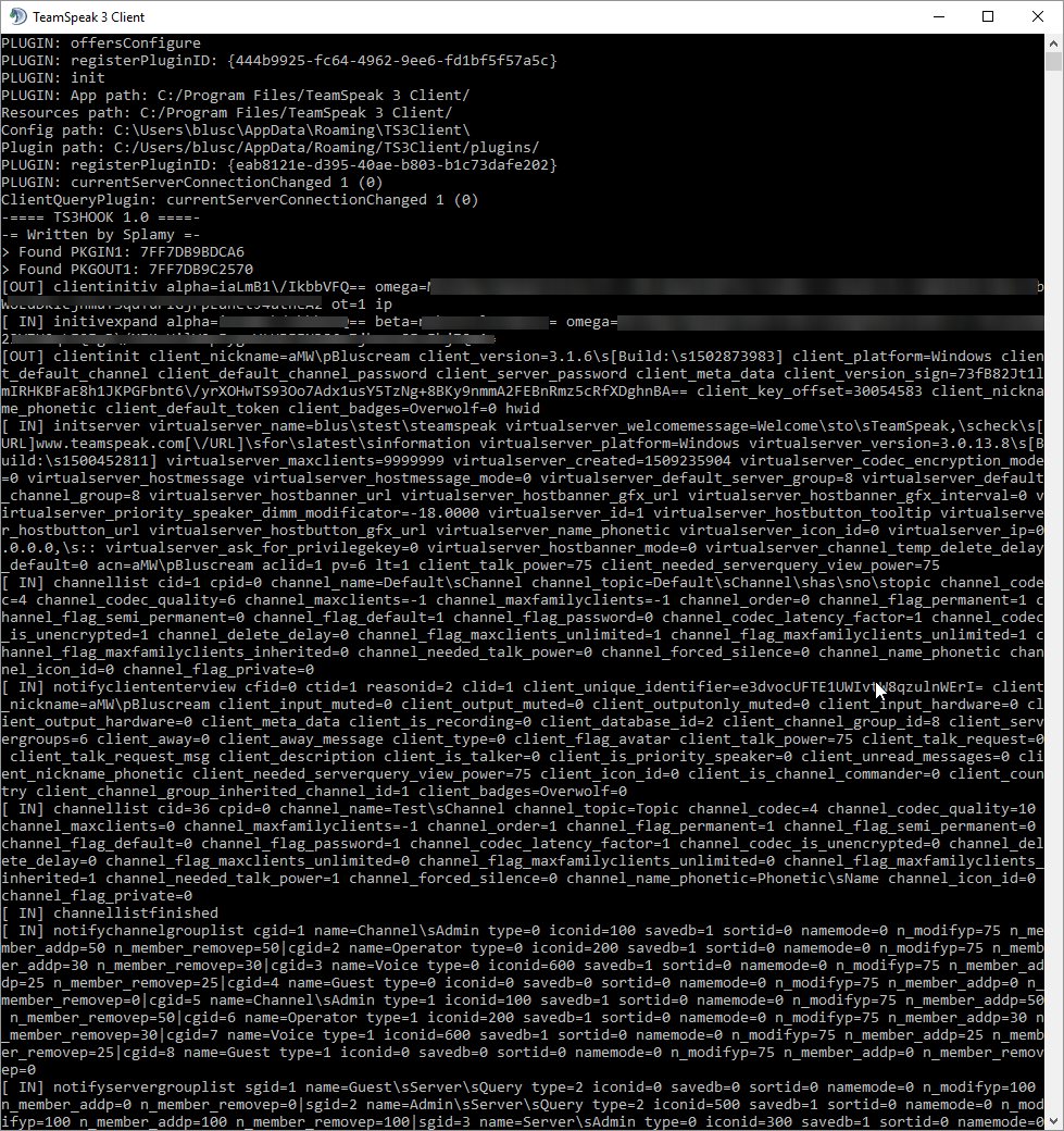 This is a hook that decrypts Teamspeak 3 command packets on the fly and displays them in Teamspeak's own Console.