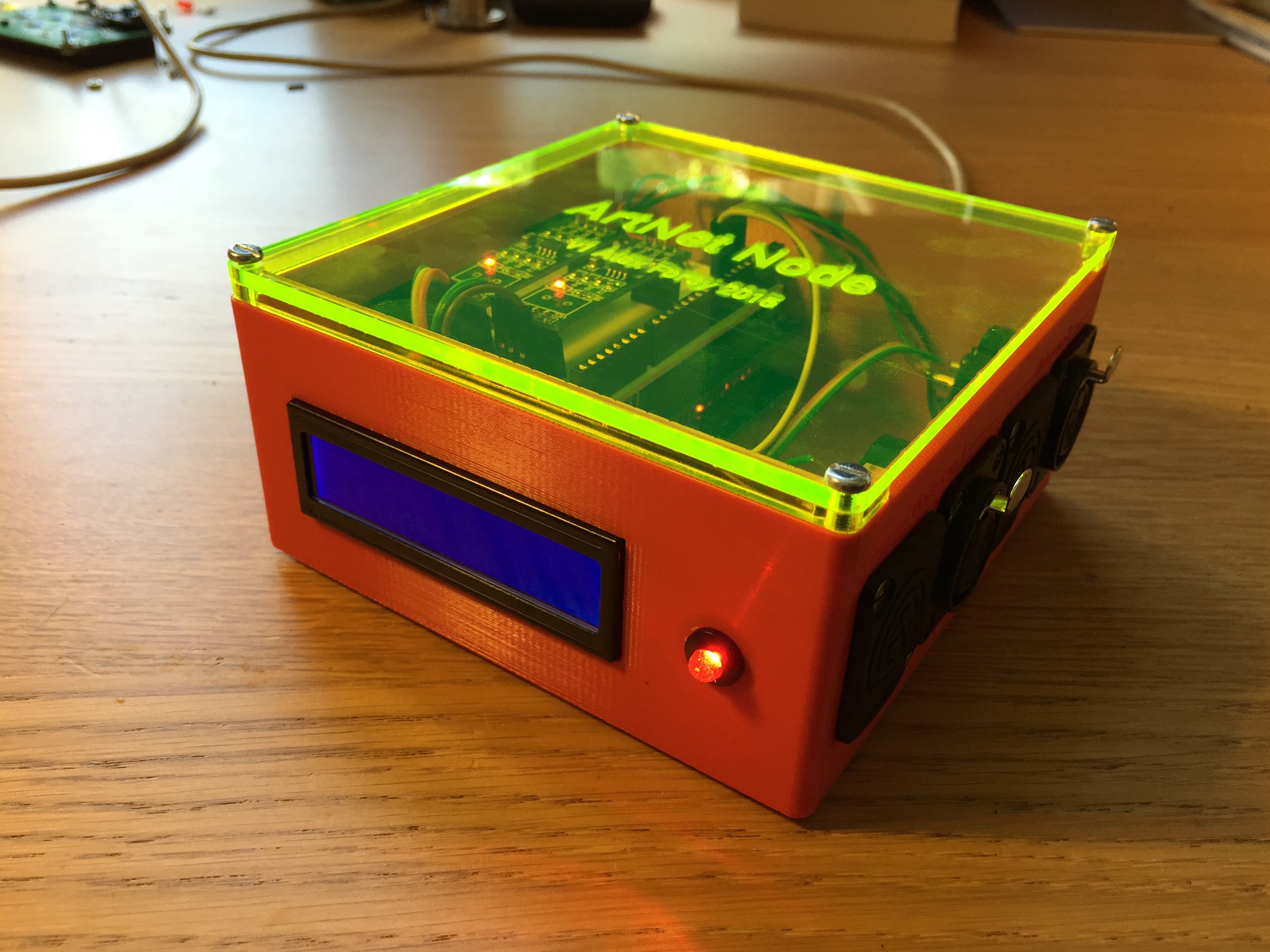 - RGB LED displaying online/offline state (detects being connected to network and receiving valid packets)
