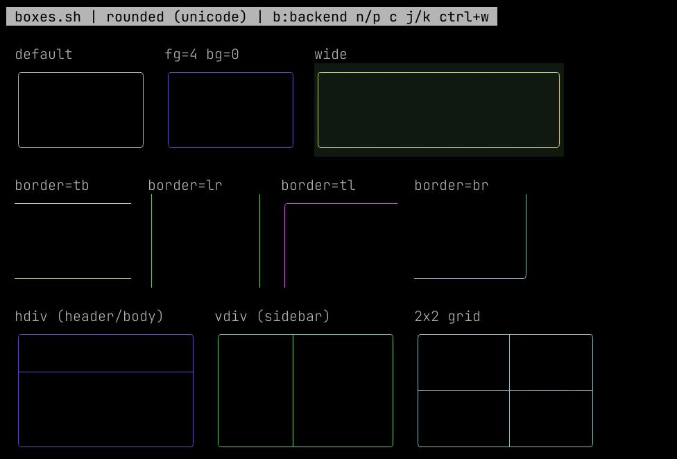 bash examples/boxes.sh # Box drawing styles and composable layouts