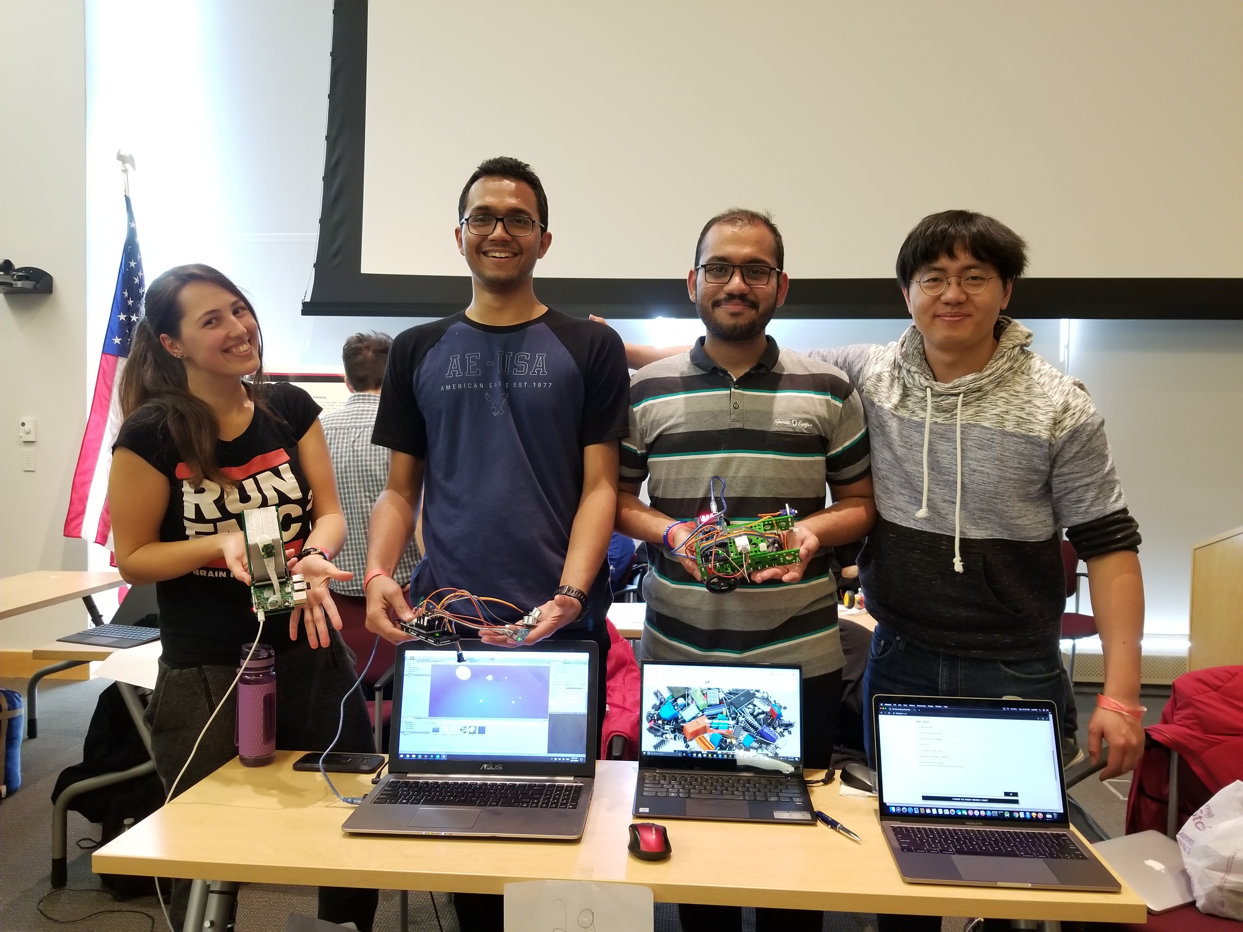 We used Arduino and SnappyXO kit and a number of sensors (Ultrasonic, Temperature, Humidity, LDR) to create a robot able to solve the maze challenge, as well as explore the environment and interact with it and the members of family. We used Raspberry-Pi and its camera to run Face Detection algorithm that distinguishes between different family members, as well as detects unknown people and activates an alert. Also, we implemented mapping of sensors' data into Unity and its visualization in real time. For the Health Care bot, the app engine, Google Cloud storage, Softheon workshop UI, DialogFlow, Firebase were used - to create a personalized care-receiving experience.