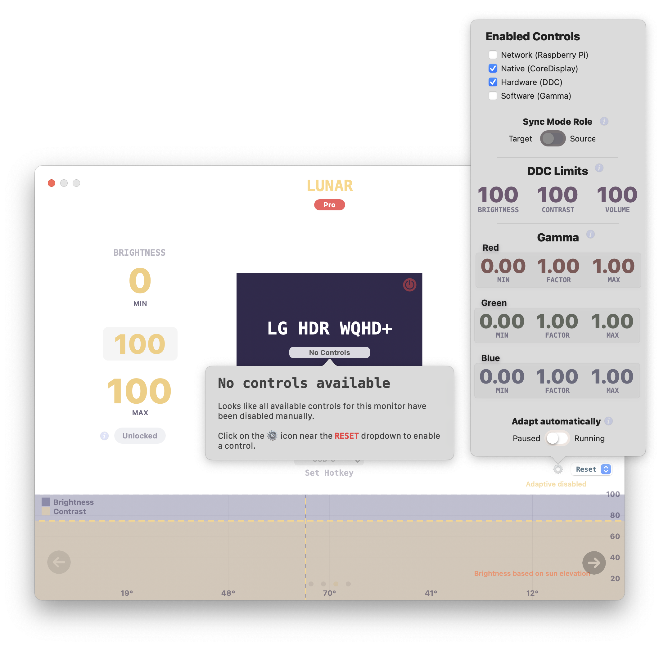 Lunar loads fine, and I have no issues with using the interface, but adjusting the brightness/contrast has no effect on my monitor.