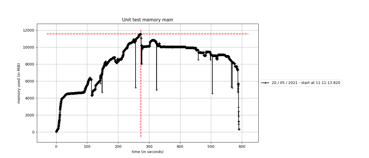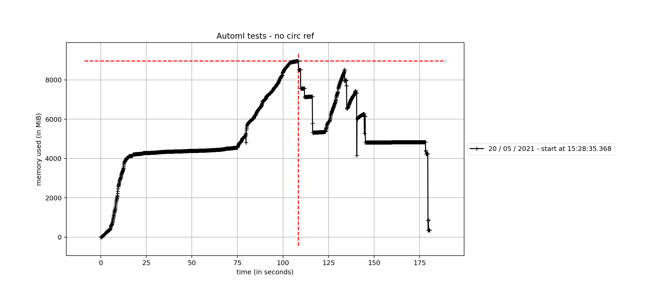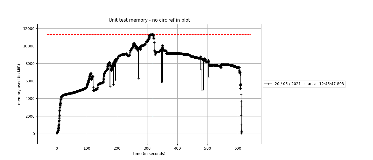 We see slightly lower memory usage at the peak (~500 mb) and the memory after the peak is lower and starts to decrease (line after peak has a negative slope as opposed to being constant).