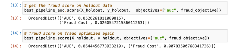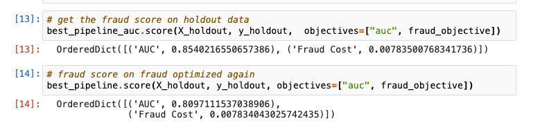 Looks like for the fraud demo - both pipelines score evenly on fraud. AUC is actually higher on the fraud optimized pipeline as well. Not sure if this is a change in behavior but could make this section a little confusing.