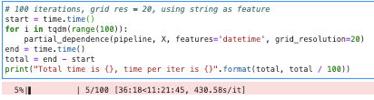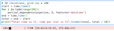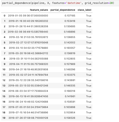 I like this, I think it's clever. Converting to seconds after Unix time, yes? So ultimately your using a large integer number to compute the grid. Perhaps we can use this calculation to replace the dates with seconds after unix time, run the data through sklearn's stock partial dependence, then convert the datetime feature back after the fact? To me, I think that would mitigate some of the code duplication and use of private funcs issues.