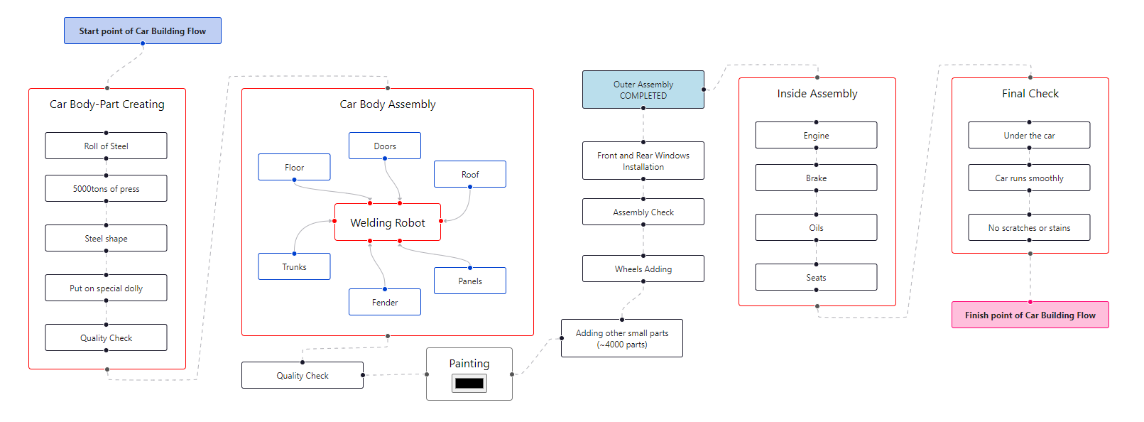 Main goal: Create a flow of car building from zero with React Flow Library.