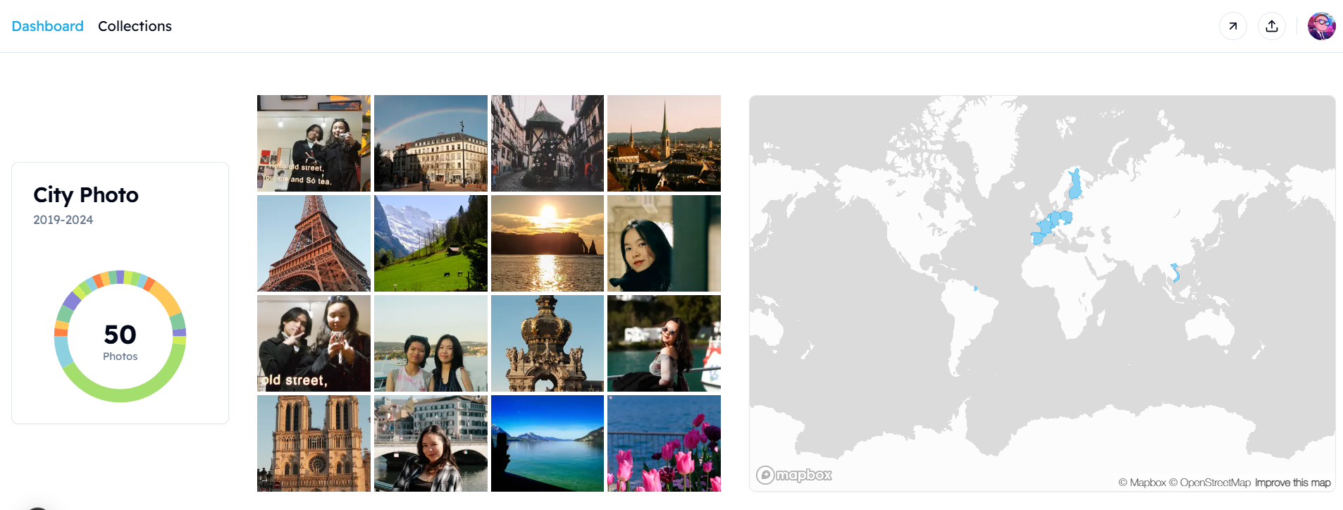 - A map to show where the photos are shot (also where have I been to as a traveler)