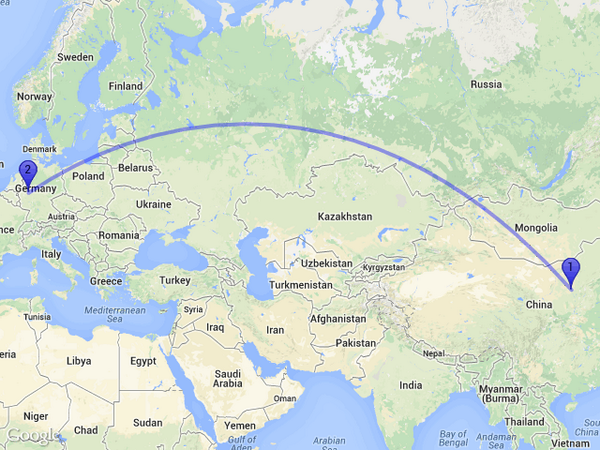 The distance between Yulin, Shaanxi, China and Attendorn, Germany is 7514km