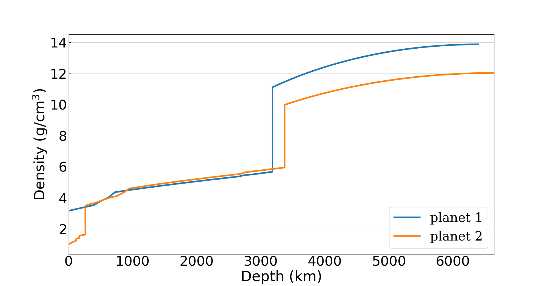 run.writeall(planet = planets, filenames = ['planet_1.dat', 'planet_2.dat'])Learning how to use ExoPlex is best done by working through the examples provided in the examples/ directory. A new user should be able to gain enough insight from the current examples to use ExoPlex to its fullest. If, after going through this README and you are still having some trouble, please email Alejandro at amloren1@asu.edu.