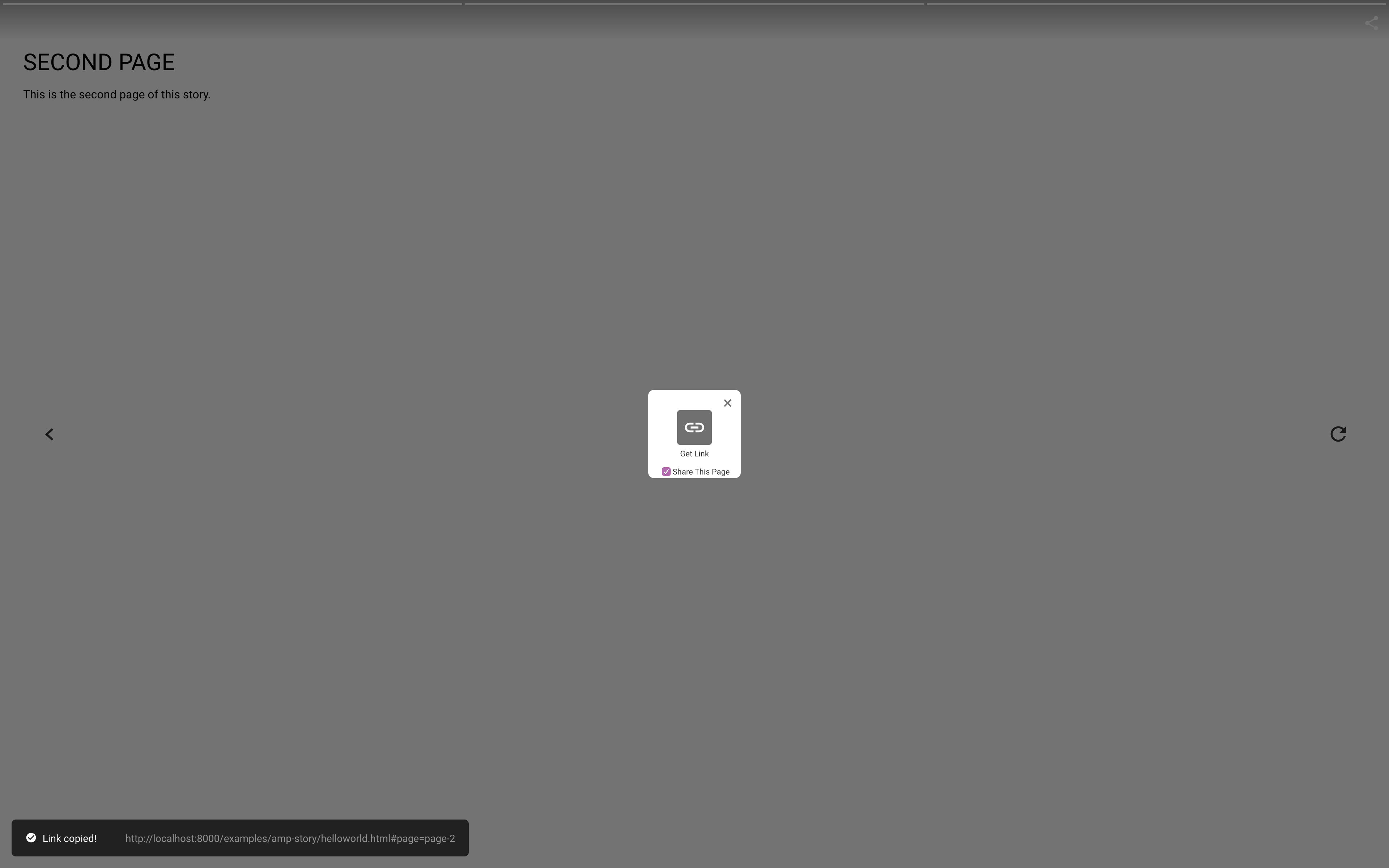 In branching, users should also have the ability to share the story from the page they are currently seeing, if they so choose.