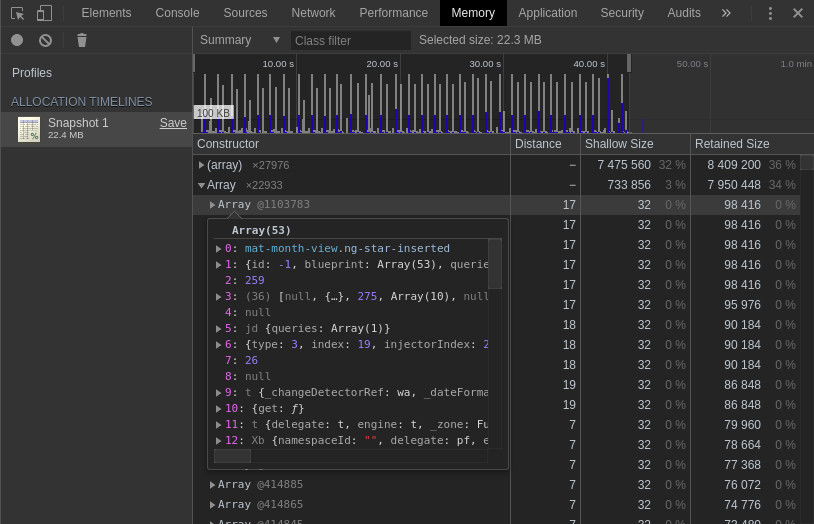 The more times we open and close datepicker, the more memory are allocated.