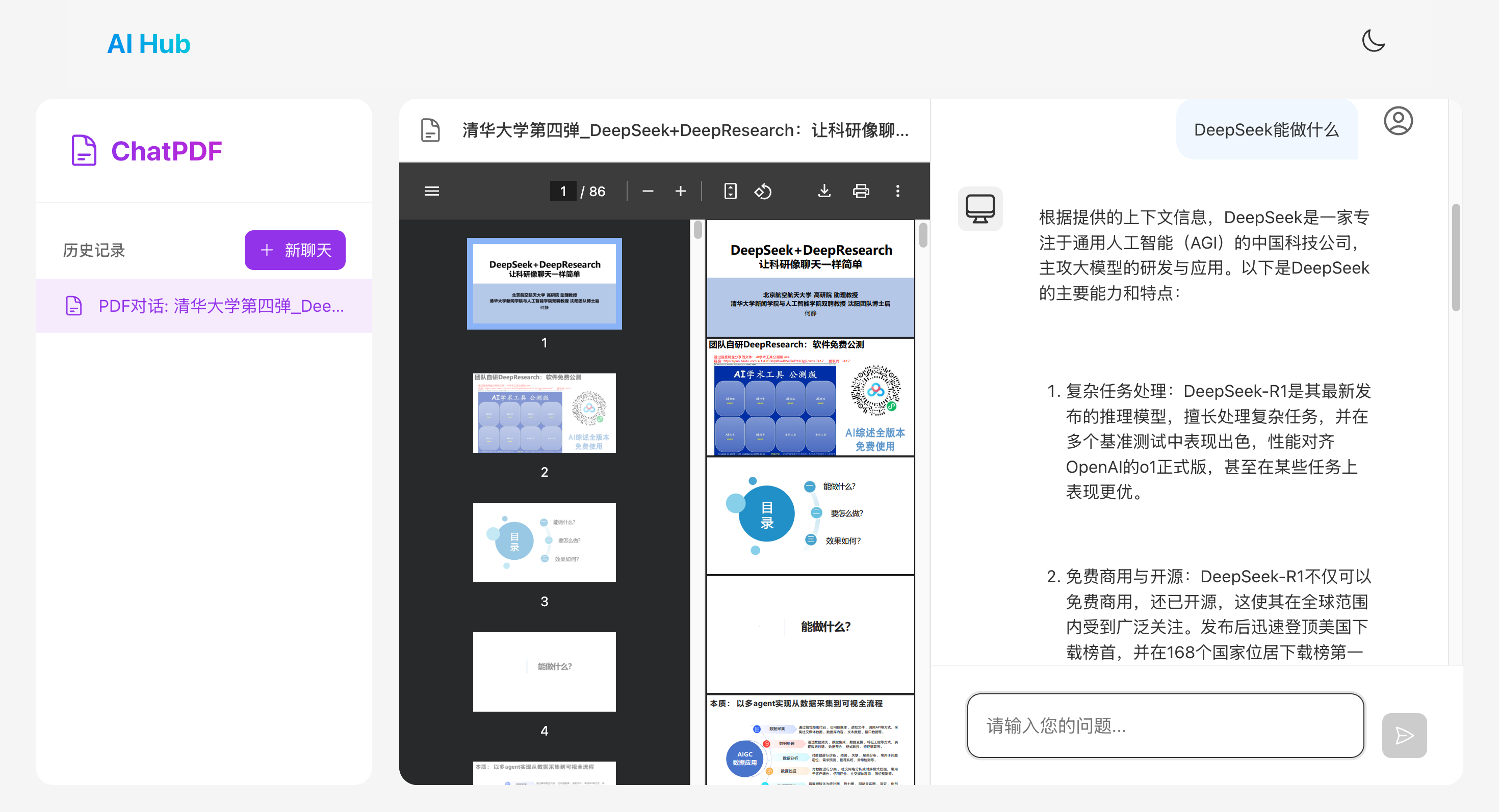 - 用户通过输入,可以快速从导入的 PDF 获取信息