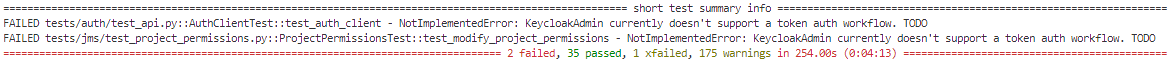 KeycloakAdminwith existing tokens, to avoid storing the password. Might need a PR to https://github.com/marcospereirampj/python-keycloak --> agreed to postpone to a follow-up PRThe 2 current test failures are due to the Auth issue above