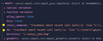 : Chained commands are not permitted in distributed ansys.mapdl.db