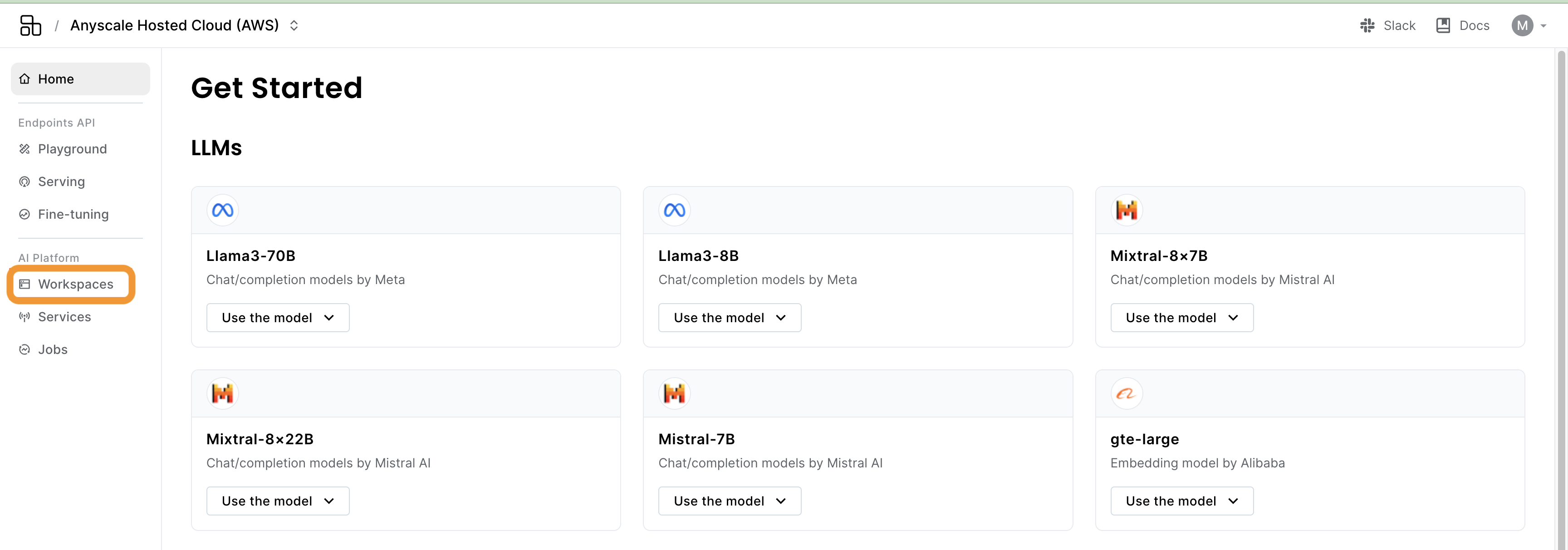 Once you are logged in, go to workspaces by clicking the "Workspaces" tab on the left side of the home screen: