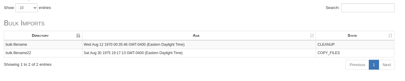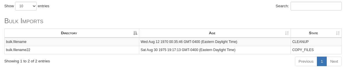 Note: I hardcoded data to be present at the REST endpoint used to gather data for the "Bulk Imports" table.