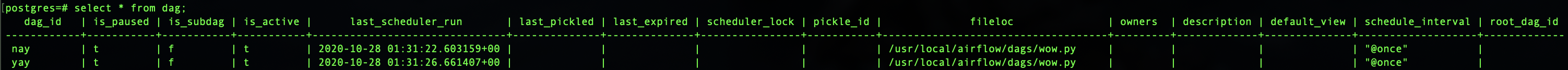 - Both the old DAG and the new DAG are visible on the UI as well as the metadata db.