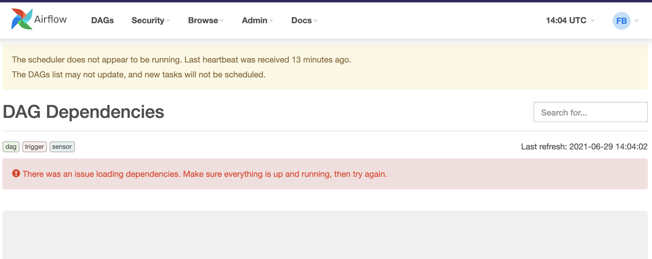 | Make sure you have dags loaded and that everything is running, then try again. |