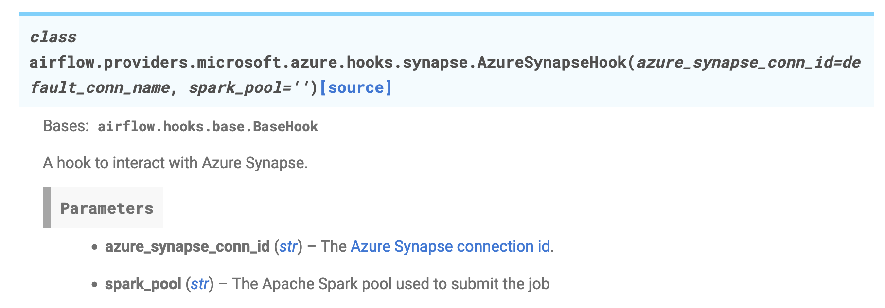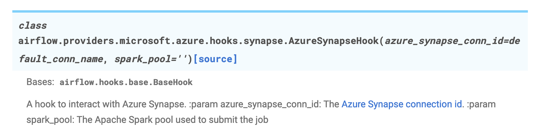 :param:directives in the AzureSynapseHook docstring. This allows the parameters to be rendered properly in the Python API documentation for better readability.Before