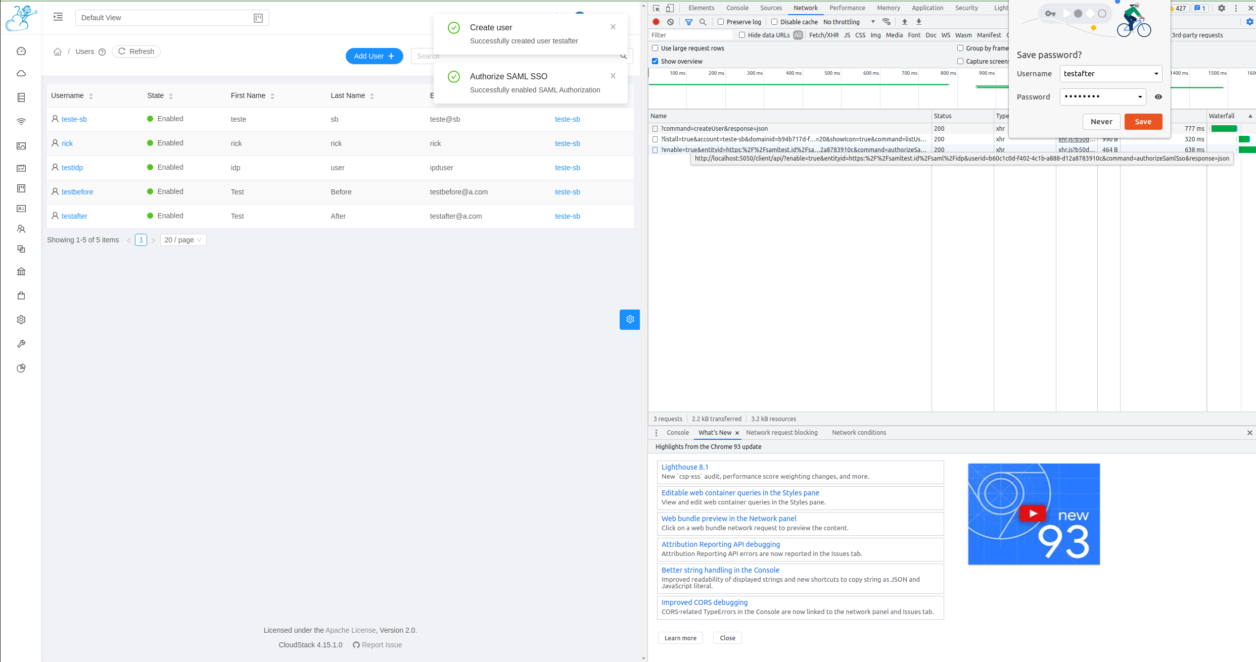 @shwstppr couple of issues, not sure if they are due to the qa.cloudstack.cloud backend of 4.15.1: (the qa.cloudstack.cloud is SAMl enabled and can be used for testing)