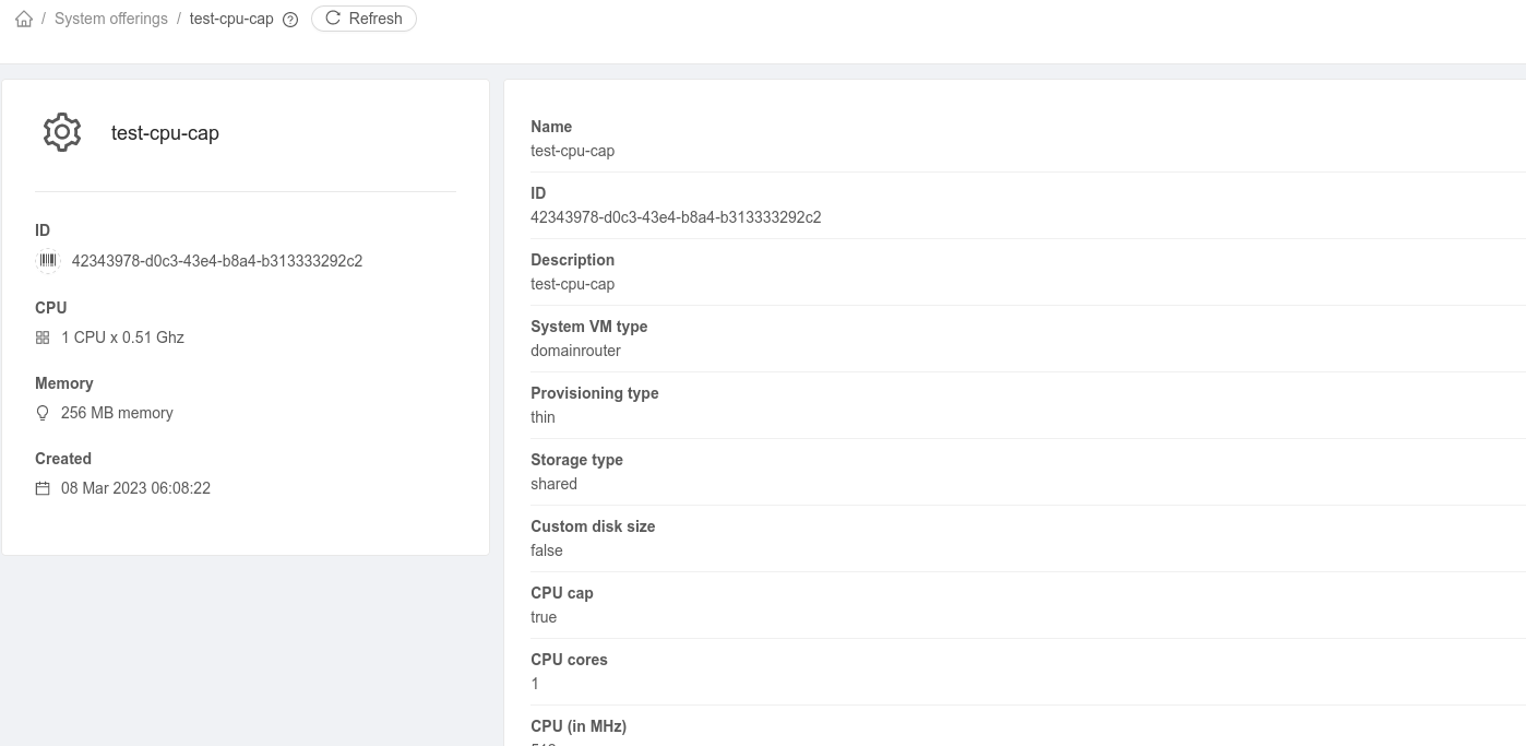 false. This PR aims to fix this behavior, to respect the CPU cap of the network offering.Types of changes
