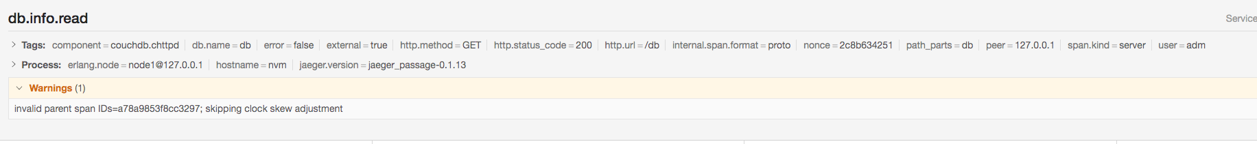 docker run -d -p 6831:6831/udp -p 16686:16686 jaegertracing/all-in-one:1.14dev/run --admin=adm:passcurl -X PUT -u adm:pass http://127.0.0.1:15984/testcurl -X GET -u adm:pass http://127.0.0.1:15984/test -H 'X-B3-TraceId: 12345678901234567890123453782027'curl -X GET -u adm:pass http://127.0.0.1:15984/test#9As an alternative to Step 4, you can run the