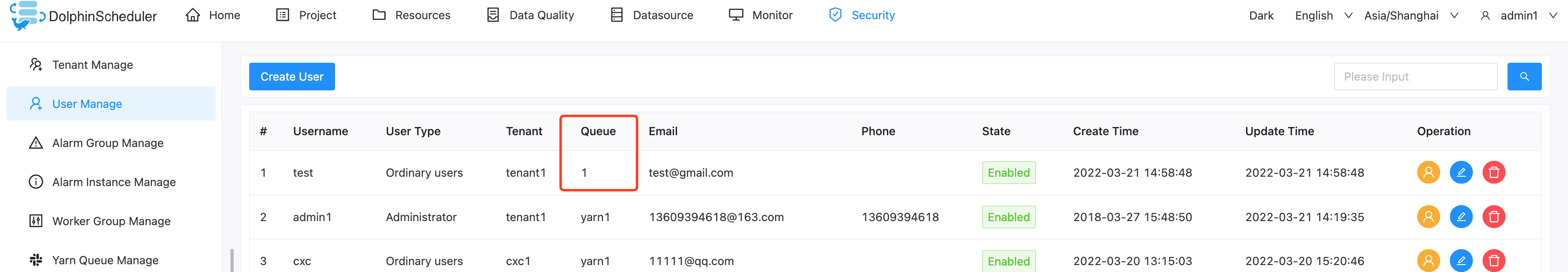 ### Search before asking - [X] I had searched in the [issues](https://github.com/apache/dolphinscheduler/issues?q=is%3Aissue) and found no similar issues. ### What happened Queue display error when I create user <img width="1919" alt="image" src="https://user-images.githubusercontent.com/8847400/159216962-b5d9a348-9dcf-47f6-849a-3c4f9b101293.png"> ### What you expected to happen Display yarn1 in Queue ### How to reproduce above ### Anything else _No response_ ### Version dev ### Are you willing to submit PR? - [X] Yes I am willing to submit a PR! ### Code of Conduct - [X] I agree to follow this project's [Code of Conduct](https://www.apache.org/foundation/policies/conduct)