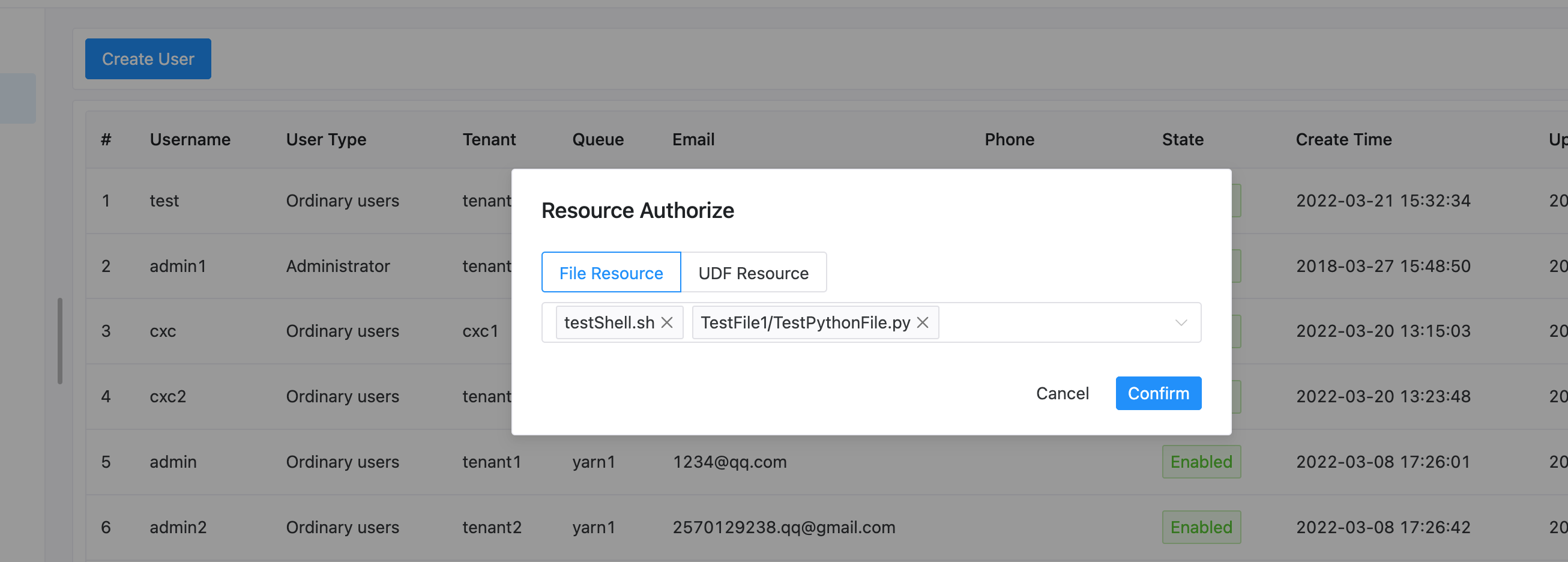 - Resource authorization page
