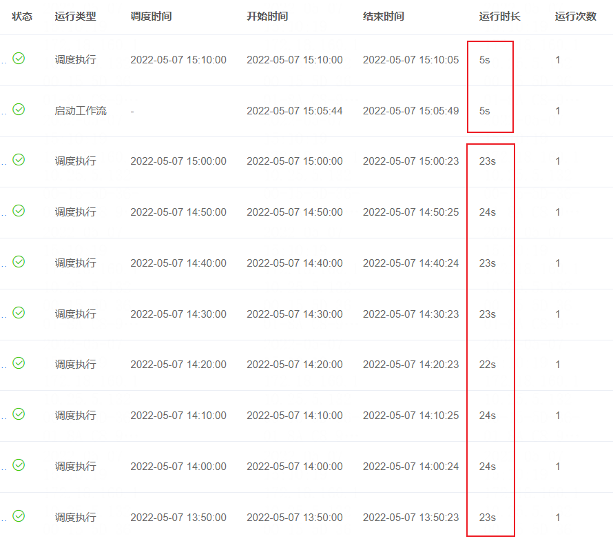 说明:耗时随着数据增加而增加,测试耗时从4s增加到20s,只有一个调度任务在跑。