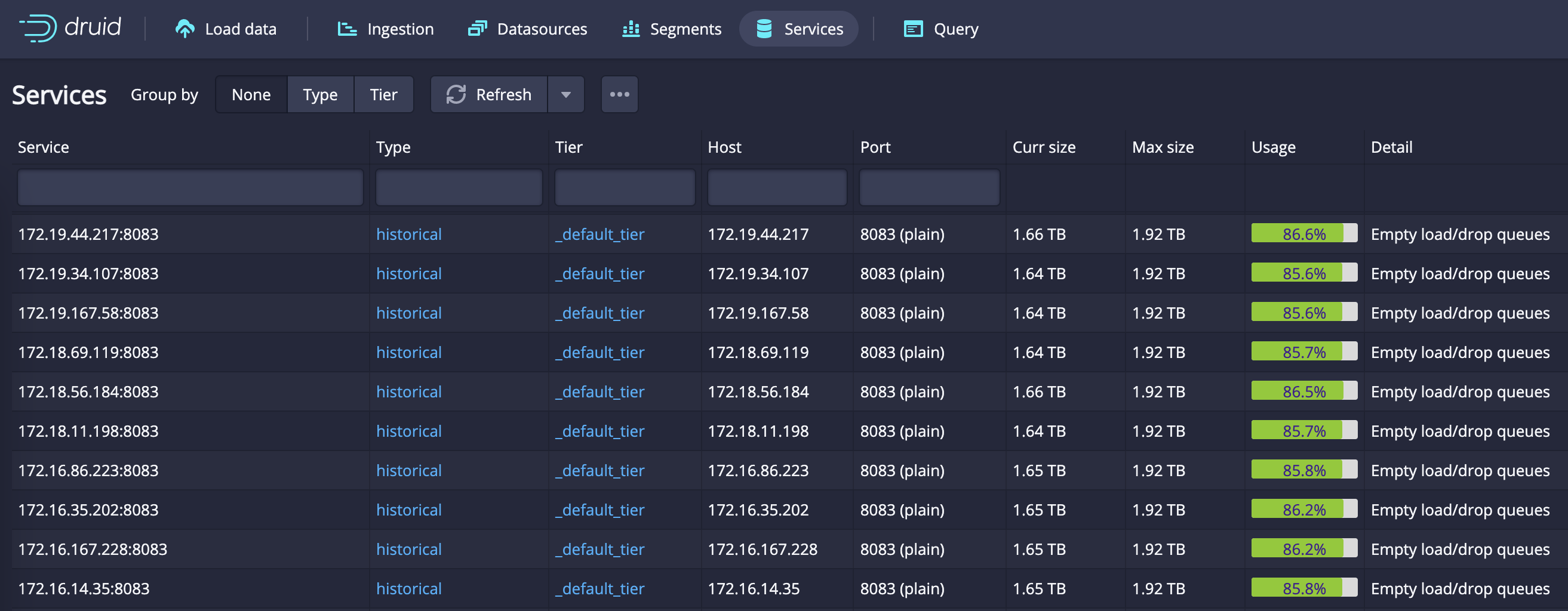/dev/nvme2n1 9.7T 1.6T 8.2T 16% /opt/apache-druid-0.21.1/var/ebs