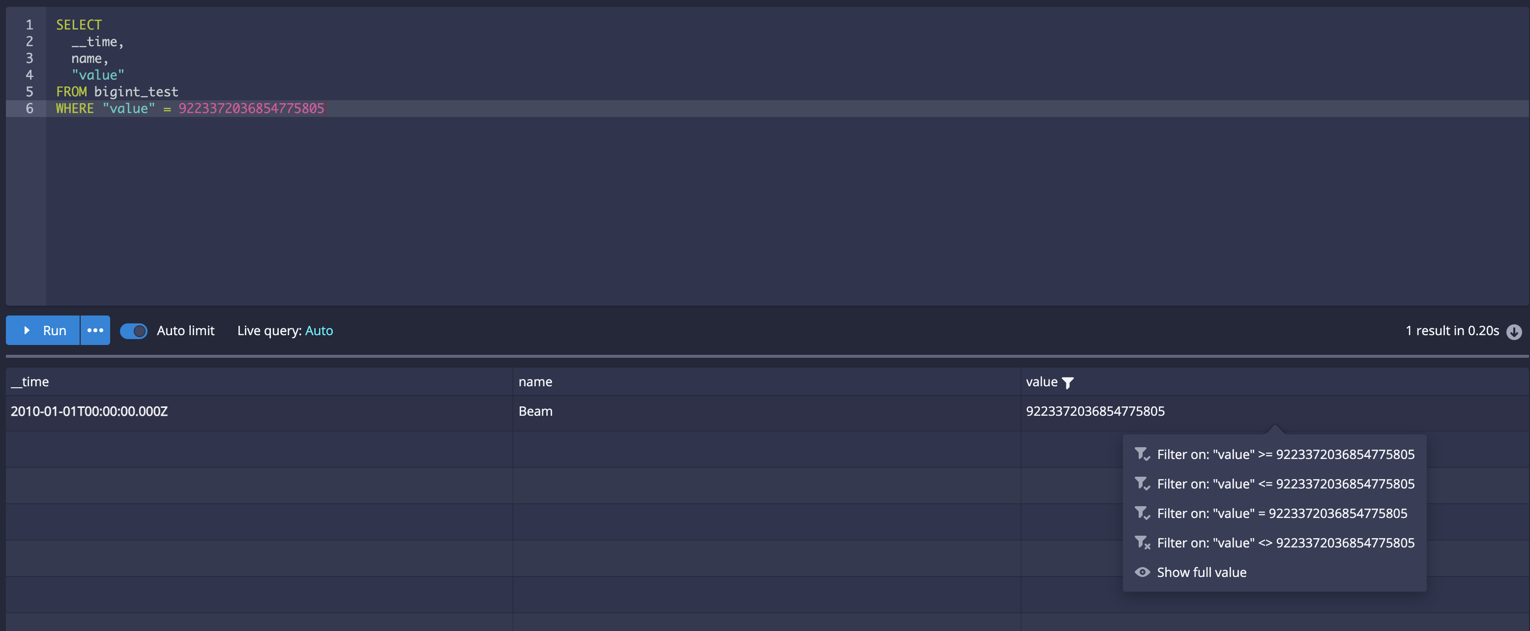 datasourceortaskId. Now you can view logs even if your datasource name ishello?Native JSON was replaced with json-big-native that can parse into