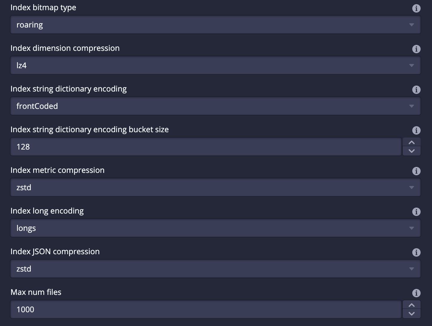 Web console: add supported indexSpec options#13388