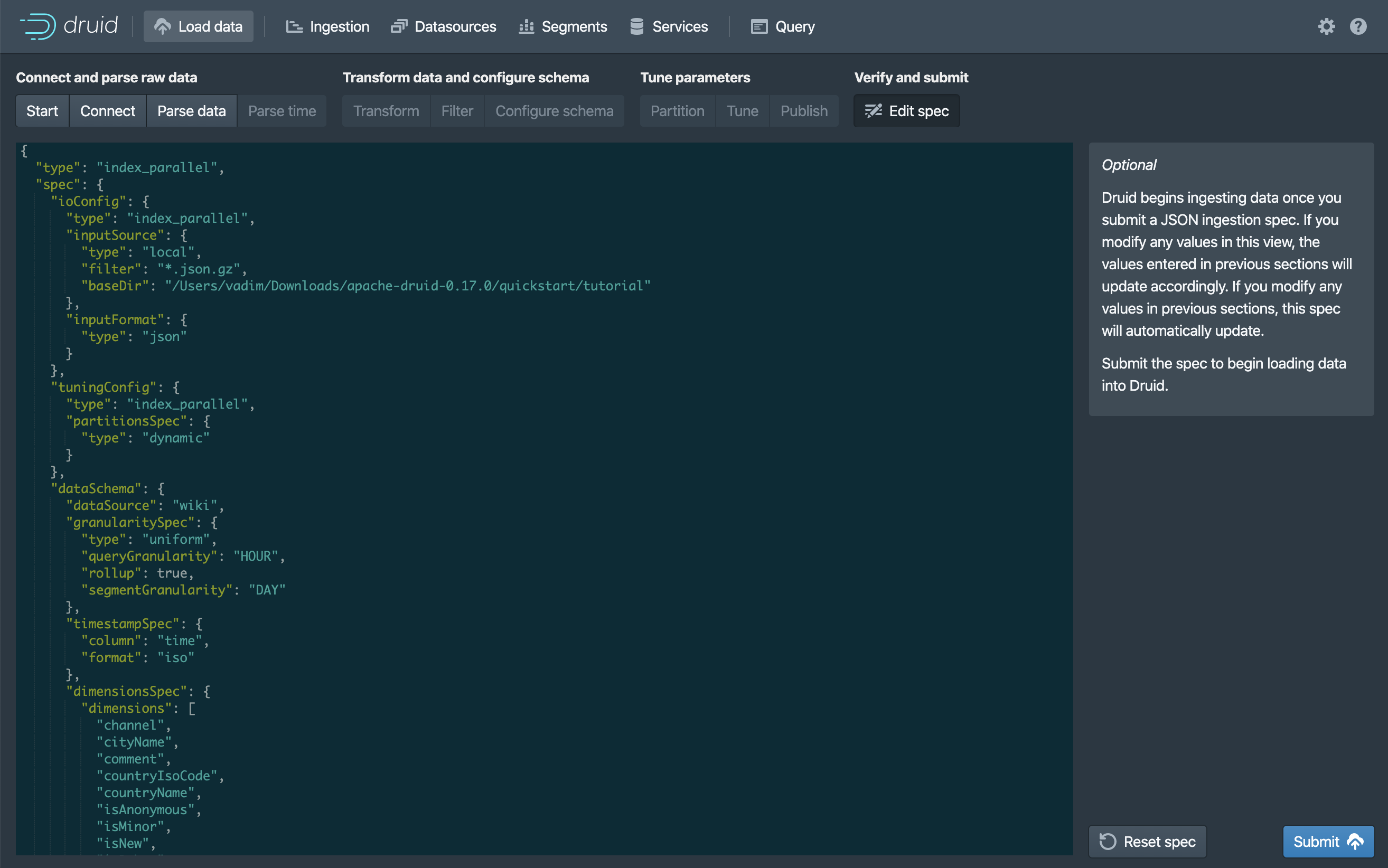 The main work is https://github.com/apache/druid/compare/master...implydata:spec-it?expand=1#diff-0a98d9c7441defdafcd0926835b640ddL42 the rest is making it all work.