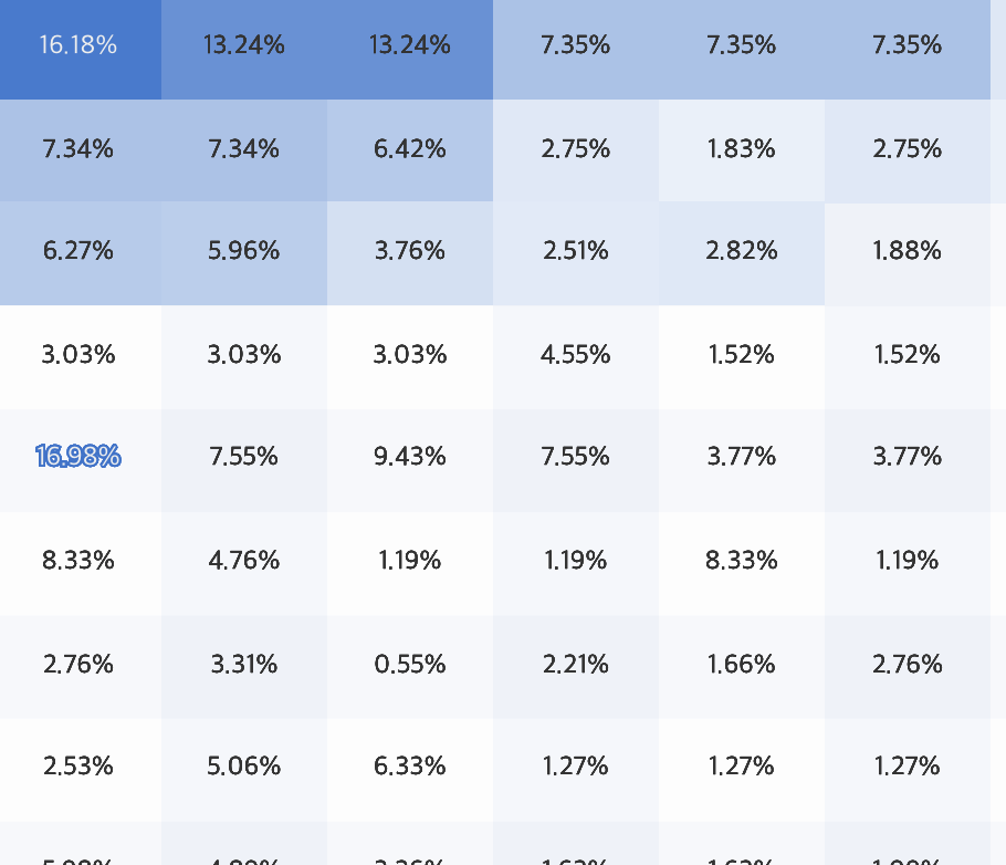 When I try to hover on the Heatmap chart that I produced, it doesn't show any labels like a blank table but only a section and a tooltip that I choose. When its label option was turned on and the chart has more than 25 elements on X-axis or Y-axis, I can reproduce the same issue here.