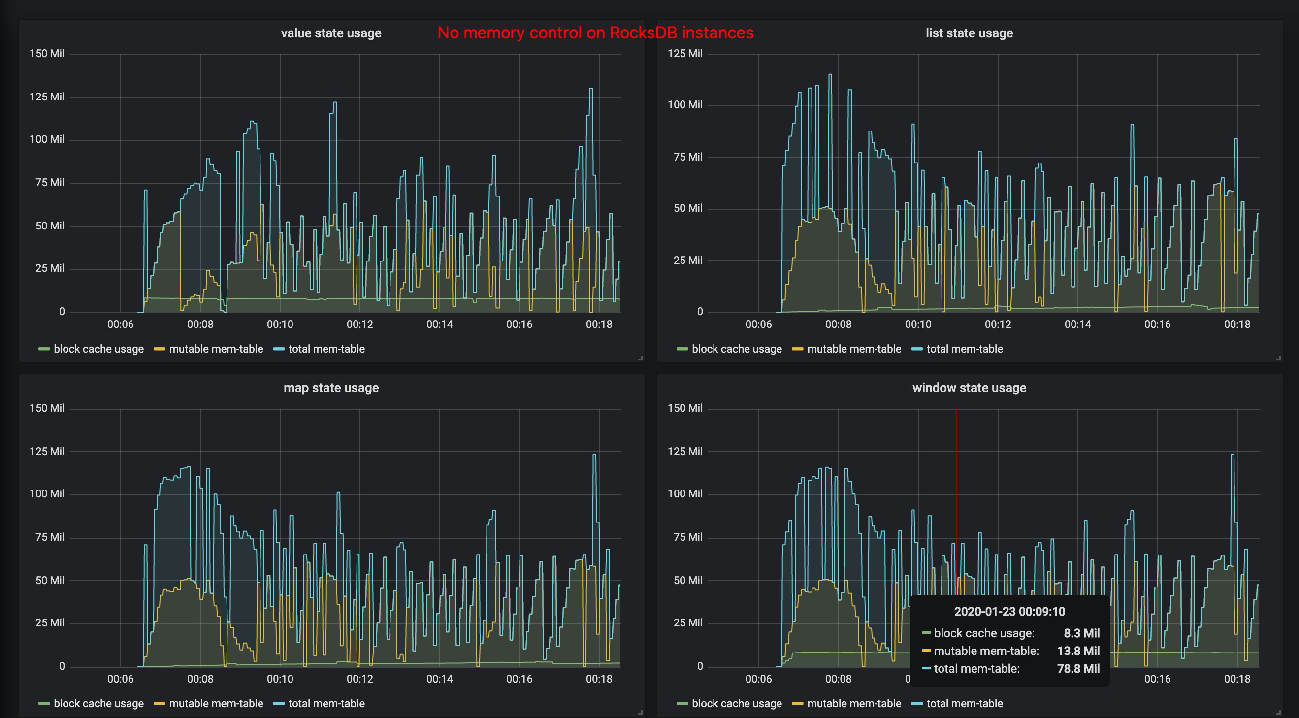 When we do not control memory usage over RocksDB instances, the total memory should be summed as