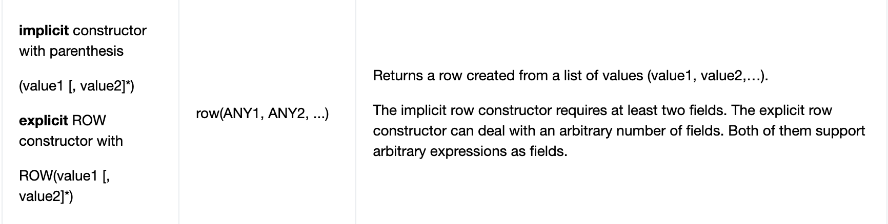 | -- explicit ROW constructor |