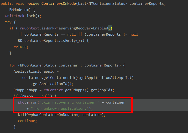 @slfan1989 Not really, Only the orphan container which status is unfinished will be killed and logged here. What is really matters is the minority ones be handled not the majority ones be skipped.