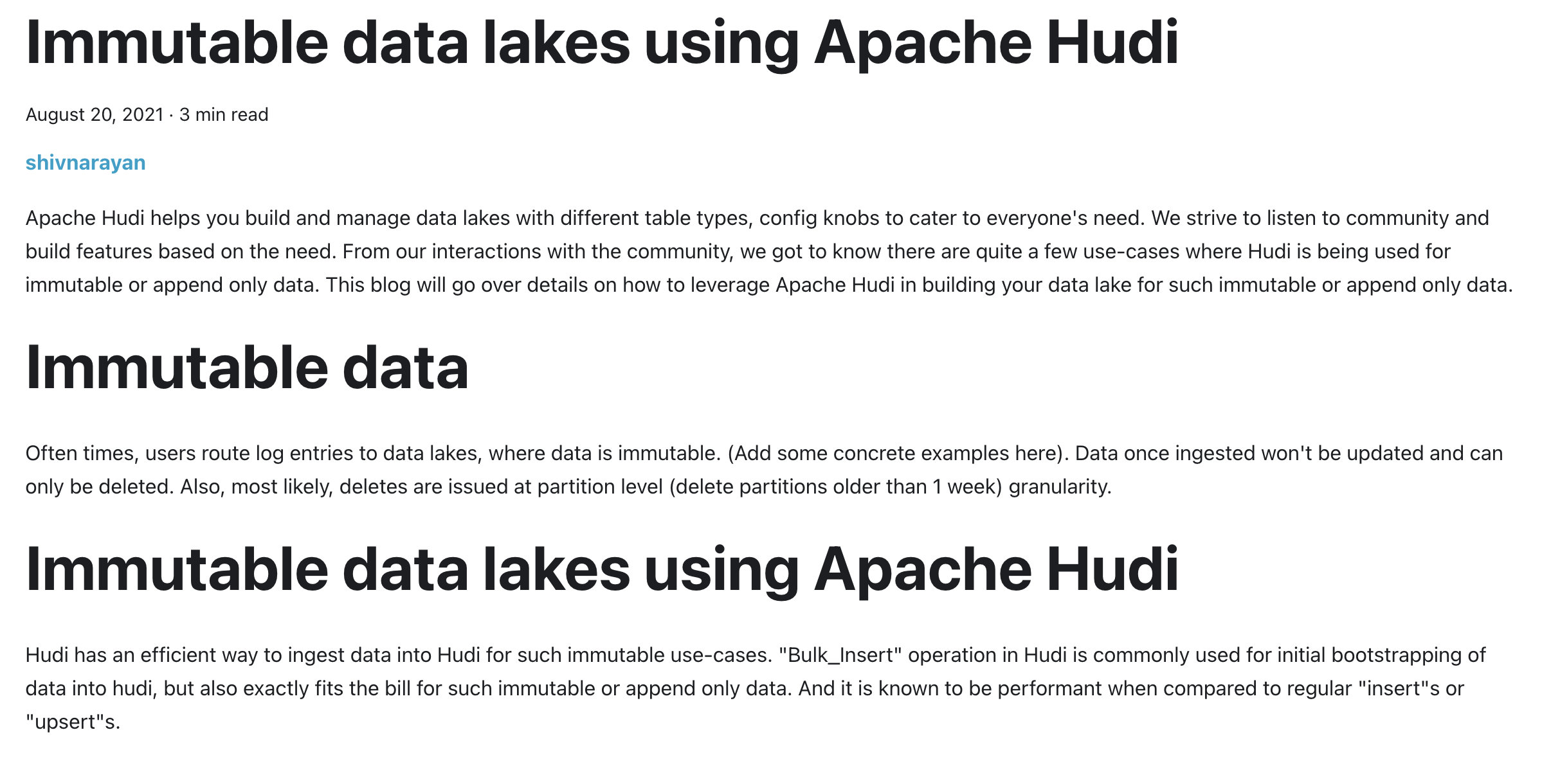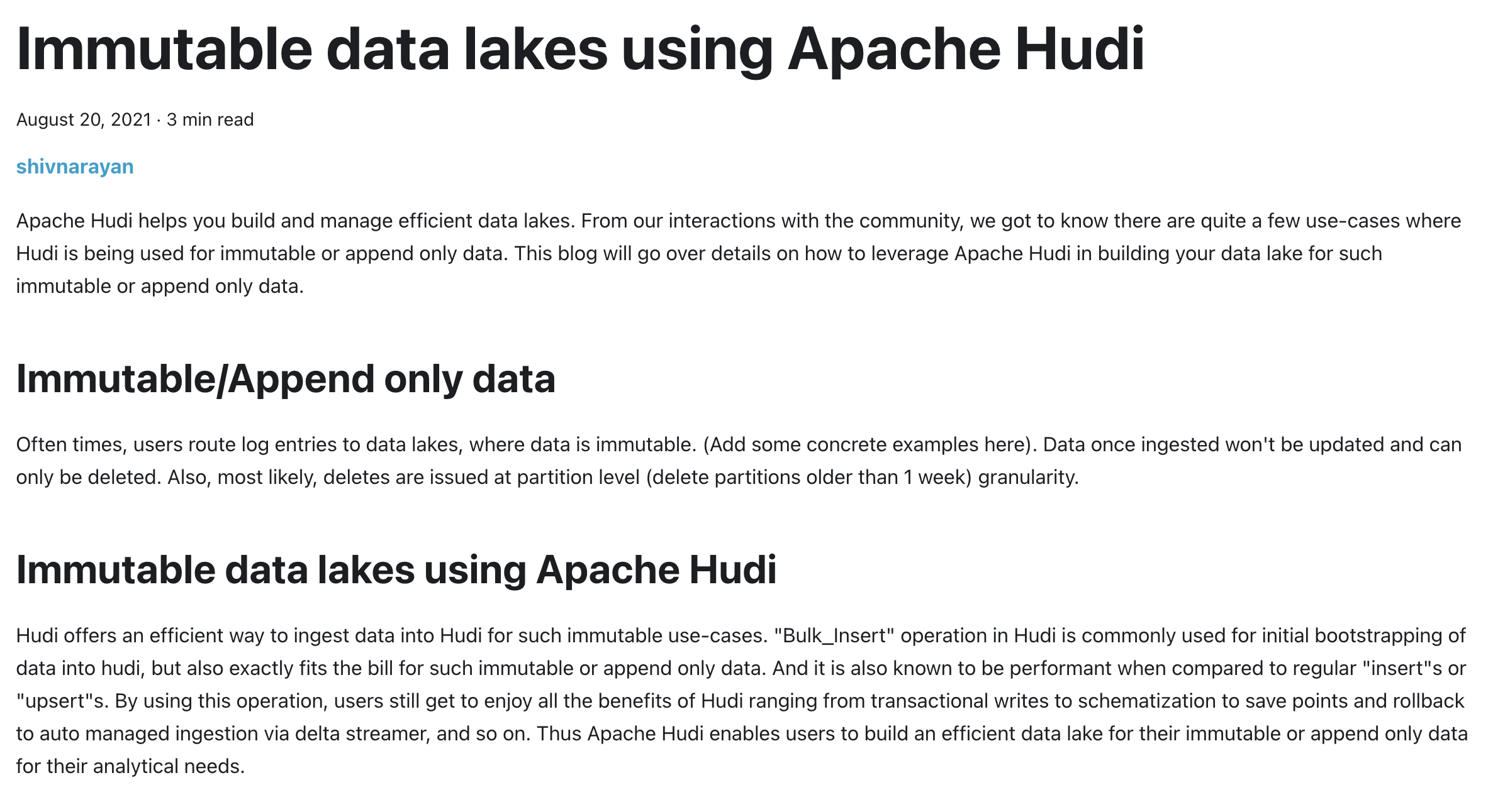 +to know there are quite a few use-cases where Hudi is being used for immutable or append only data. This blog will go