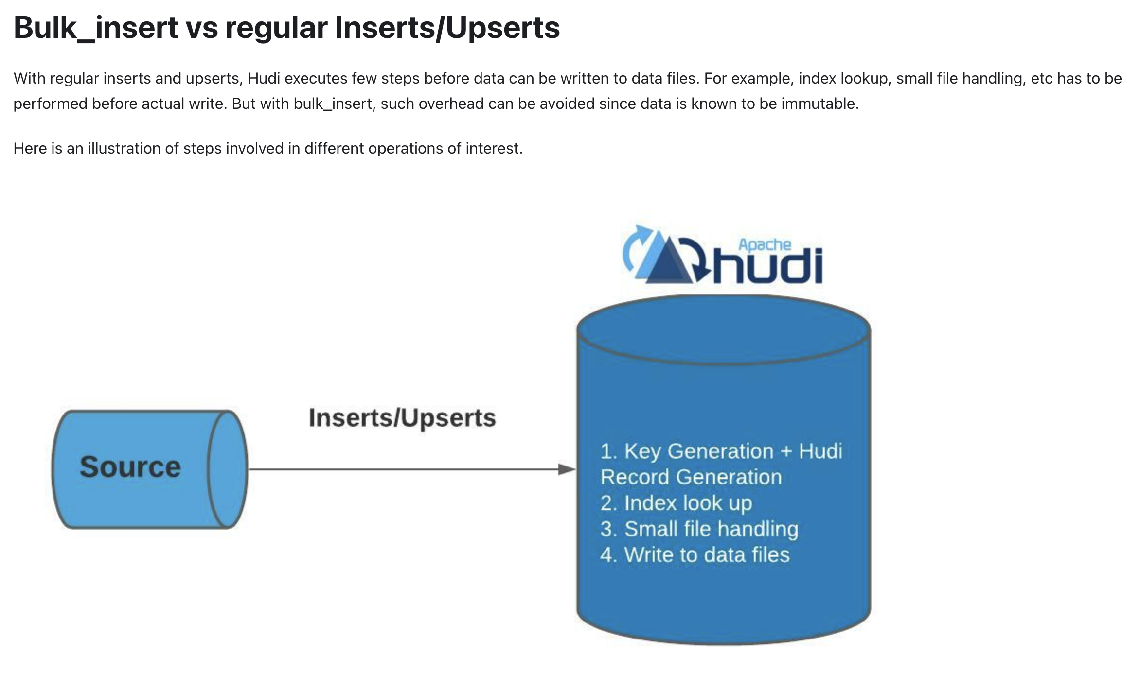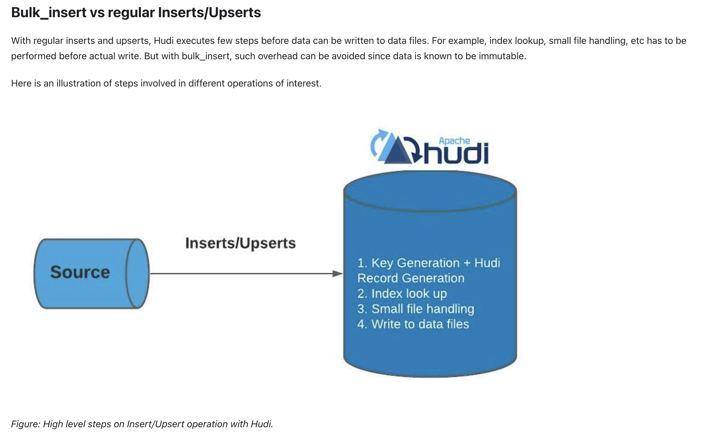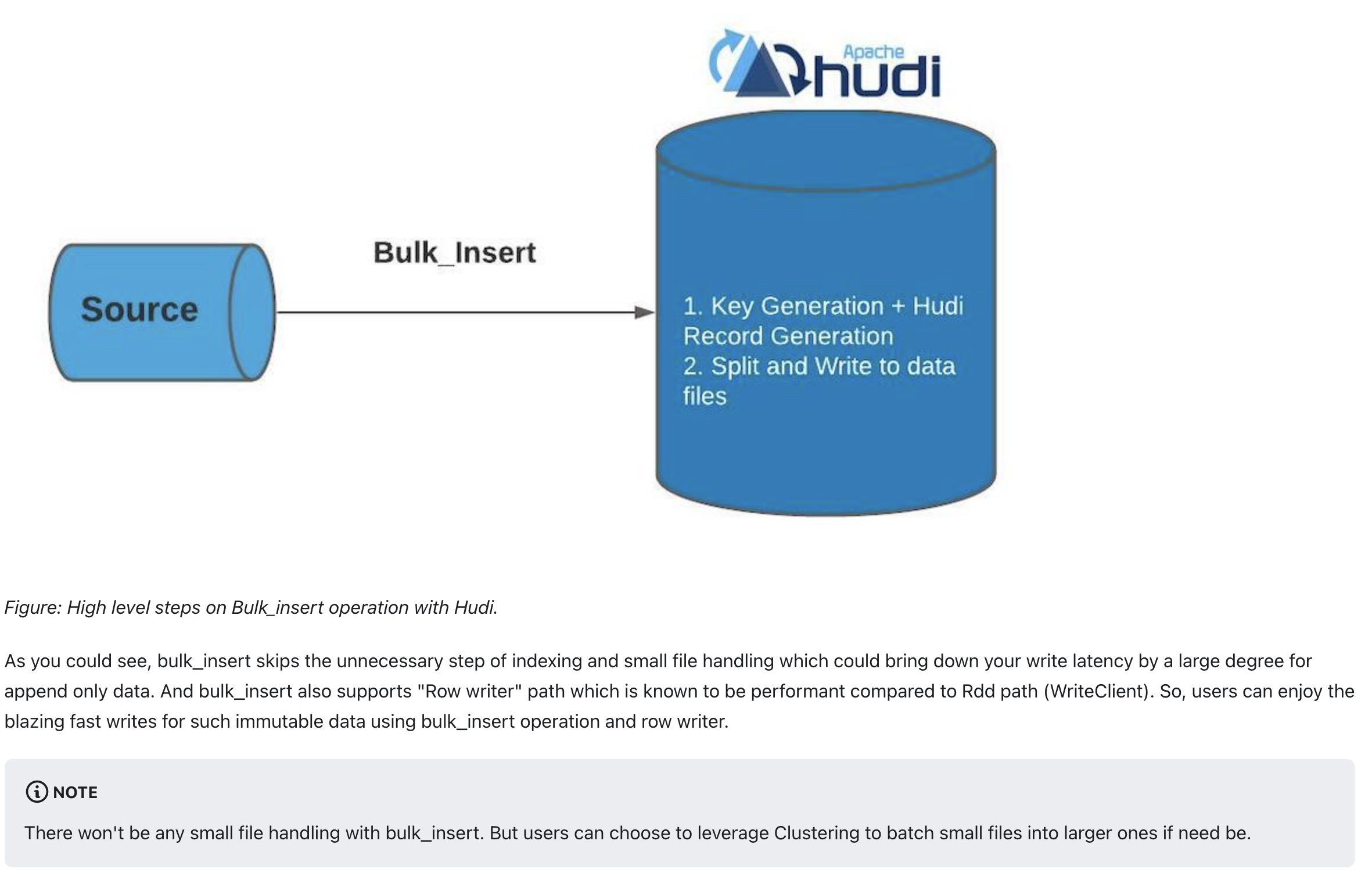 +As you could see, bulk_insert skips the unnecessary step of indexing and small file handling which could bring down