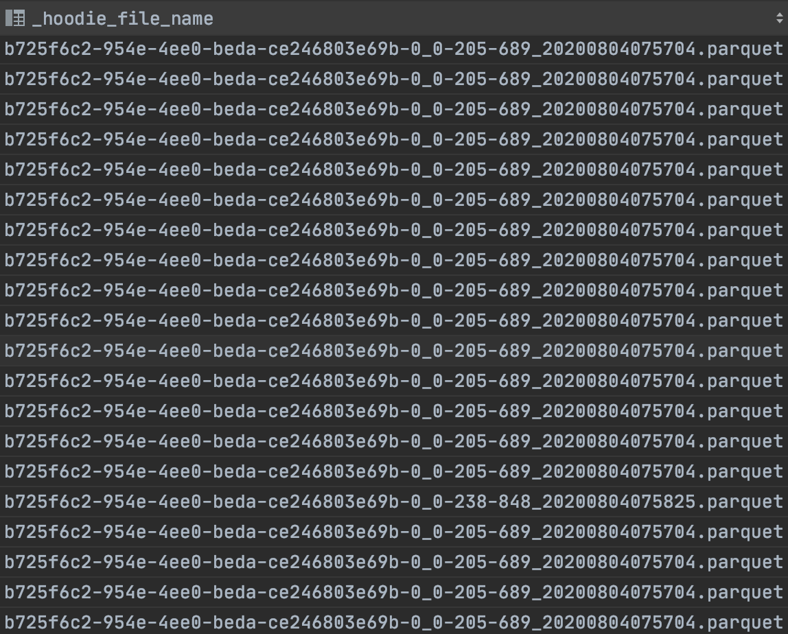 I checked the _hoodie_file_name and all of the records have same file names