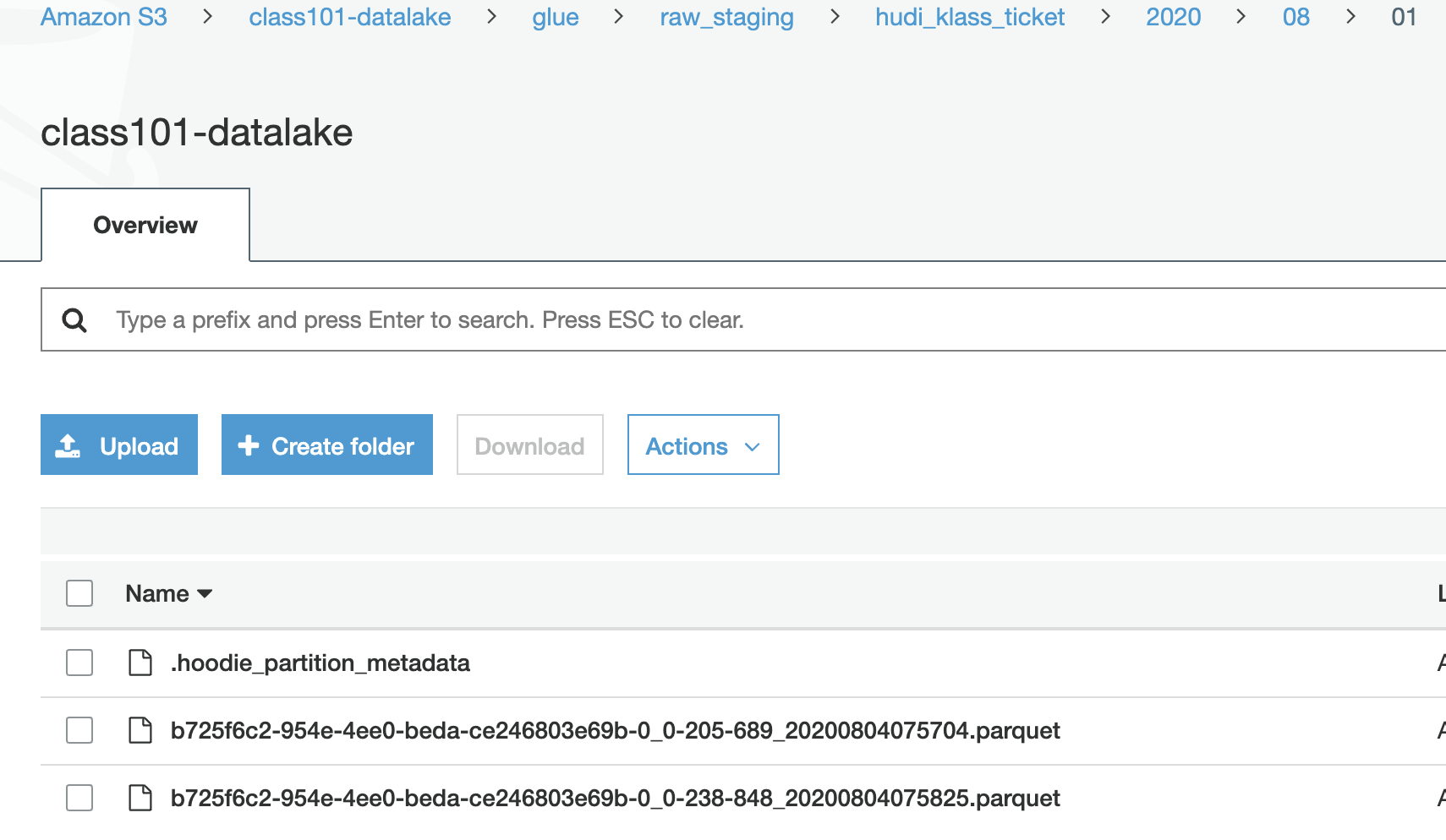 overwriteto initiate the table on S3 (Glue)