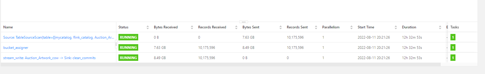 试过导入100万数据和1000万数据,最近几次导完数都会发现少一部分数据,重复试过几次,每次导完查询结果都不一样,丢的数量不一定,hive和flilnksql查的结果一样,flink程序无异常。但是前几天测的时候没有发现丢数,两次区别在于,本次设置了write.rate.limit=1000。