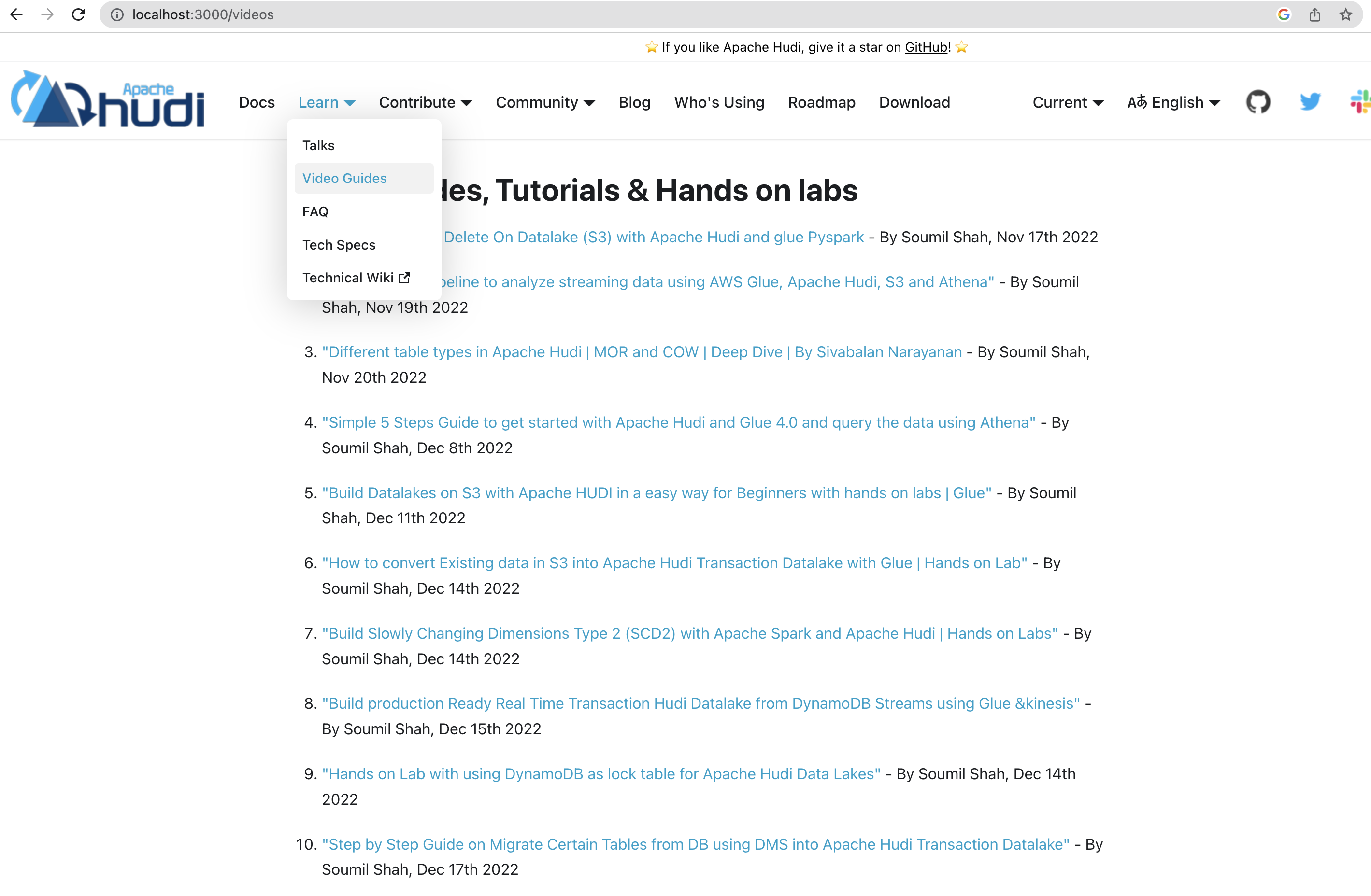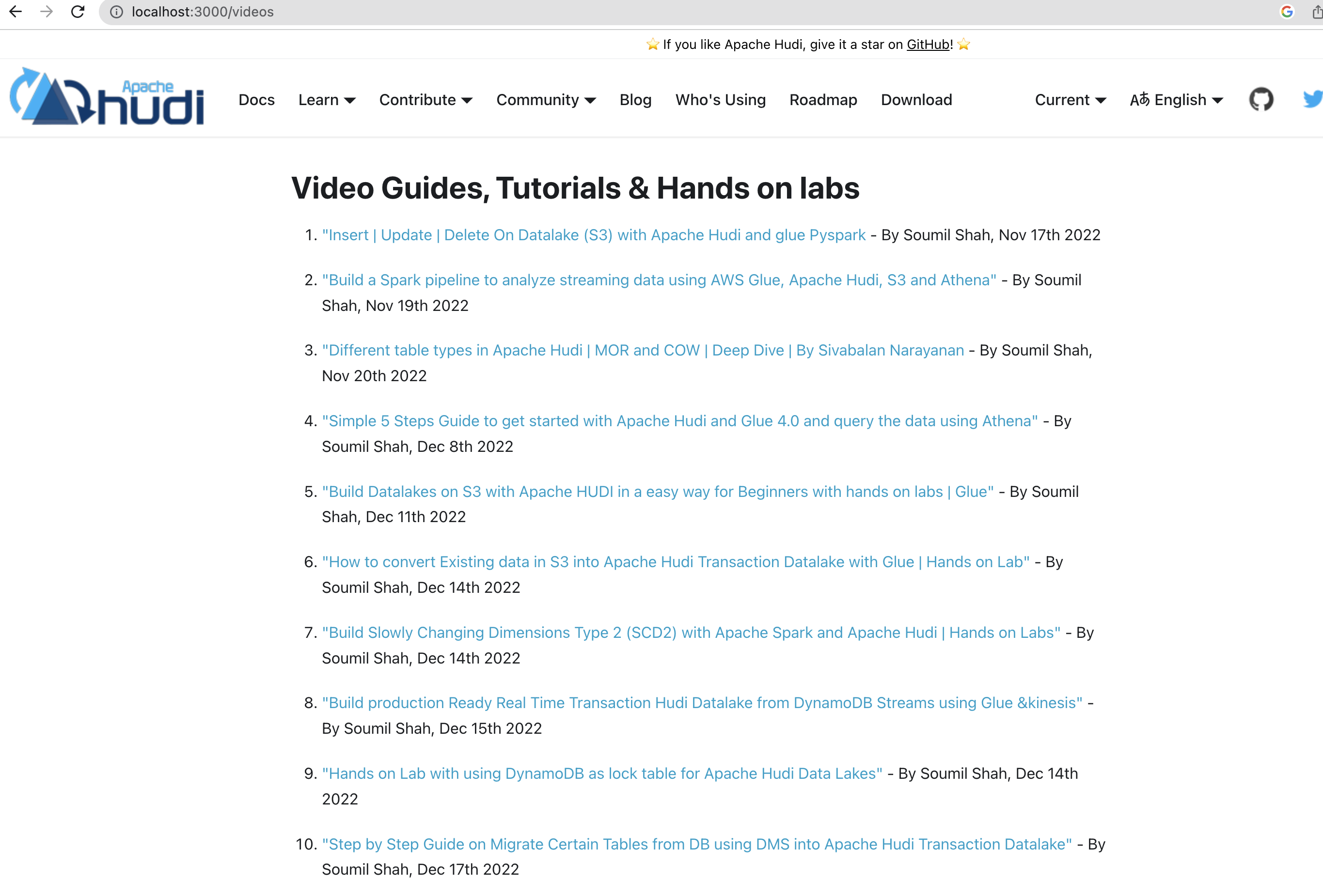 [DOCS] Add videos page for tracking all guides, tutorials and hands o…#7534yihua merged 1 commit intoapache:asf-sitefrom